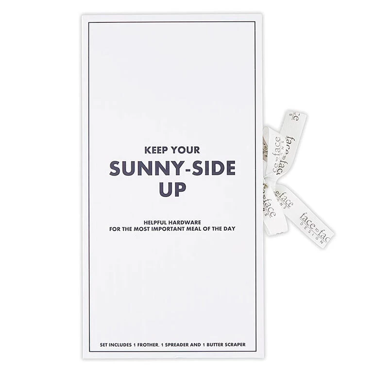 Start off every day in a good way with this breakfast tool set from Face to Face. Stainless steel kitchen utensil set includes a frother for making foamy lattes, a flat spoon-shaped jam spreader and a butter scraper along with a recipe for Birds in a Nest inside the front cover of the book-shaped box. This breakfast tool kit makes a great gift for weddings, Mother’s Day, Father’s Day and more.