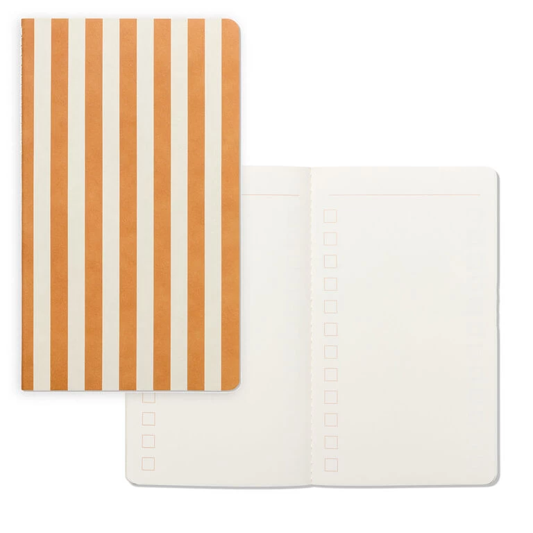 Get your days organized with this three-pack of single flex notebooks. Cute cover designs of green-and-white checks, orange-and-white stripes and pink-and-white wavy lines make a cheery backdrop for notes, goals and lists. Each softcover notebook features a different interior: dot, grid and unlined checklist. Give this cute notebook set as a fun gift for graduations, birthdays, Mother’s Day and more.