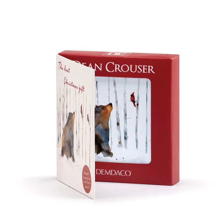 - Bear and cardinal ceramic ornament with magnet on backside and tear-off greeting card.