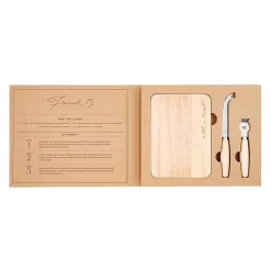 - Garnish tool set includes a small wood cutting board, knife and zester in a giftable cardboard book-shaped box.