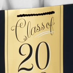 - On gold banner gift bag: Class of 2023; On mortarboard gift bag: Congrats!