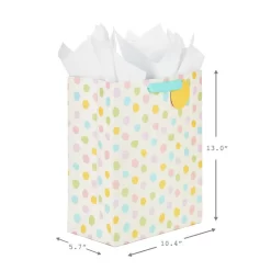 Welcome baby or multiple babies with this trio of gift bags featuring sweet designs in coordinating colors. This three-pack of large gift bags includes nine sheets of white tissue paper so you’ll have your baby shower gifts wrapped in an instant. And fun details like a rainbow handle, a die-cut plaque attachment or a coordinating gift tag make each bag a standout on the gift table. Hallmark large-sized bags hold gifts like toys, stuffed animals, fashion dolls, books, puzzles, clothing items and more.