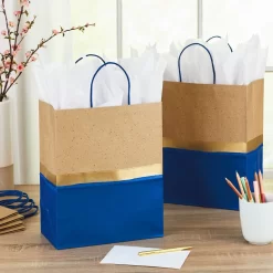 - Designs include: “Happy Birthday to You” lettering on blue; “Happy Birthday” lettering on white; gold interlocking rings on white; white polka dots on gray; blue and purple floral; and gray and white check.