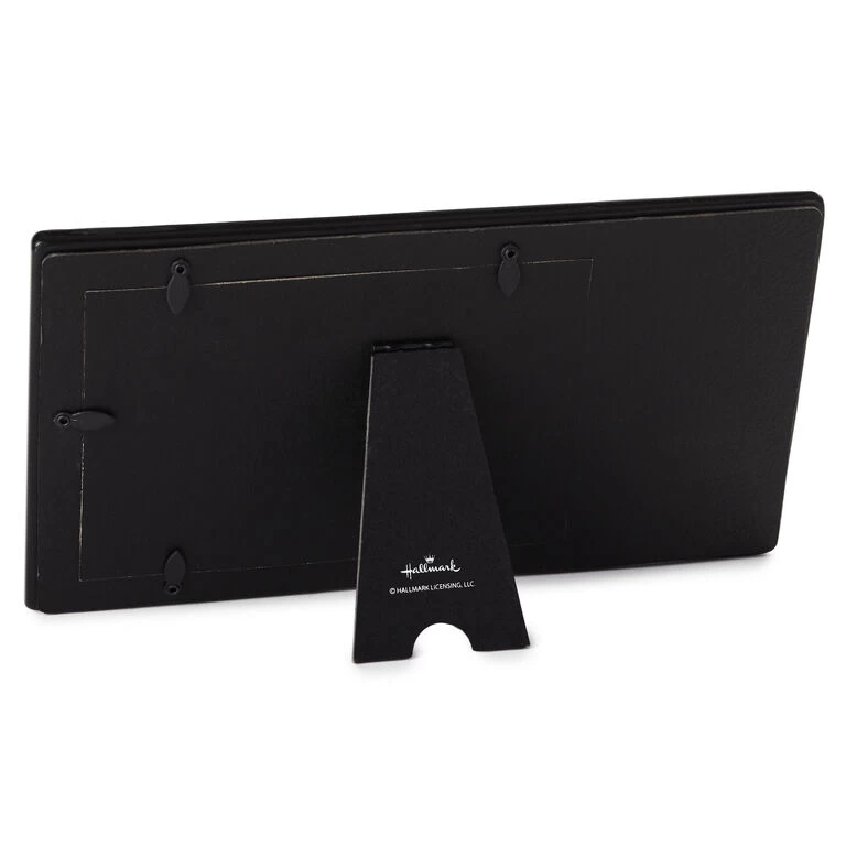 • Ceramic frame features a black speckled finish with an off-center horizontal opening and a debossed message in white text.