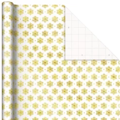 Create an elegant display under the tree with this collection of Christmas wrapping paper and trim—all in one convenient kit. Create perfectly wrapped packages with three gift wrap rolls in coordinating designs of red, white and green, plus 10 metallic gift bows, 4 spools of metallic curling ribbon and 40 gift tag stickers. Hallmark premium gift wrap rolls include a cutting grid on reverse to ensure straight lines.