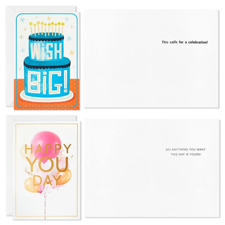 - Includes 12 cards and 12 envelopes: 7 birthday cards, 1 encouragement card, 1 congratulations card, 1 thank-you card, 1 sympathy card and 1 blank card.