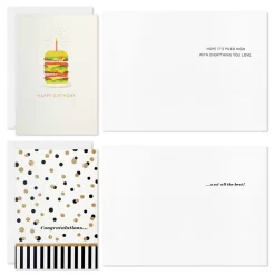 All-occasion cards assortment features 12 different designs that sparkle with foil and glitter accents. This multipack of all-unique designs and messages is perfect for sharing happy birthday wishes and notes of hello, congrats, sympathy and more with friends and family throughout the year.
