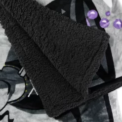 Get in on the fun of the Sanderson sisters’ spells with this cute and cozy blanket with stylized designs and a quote from the classic movie “Hocus Pocus.” Winifred, Sarah and Mary appear larger than life between lettered rows carrying the black flame candle legend.