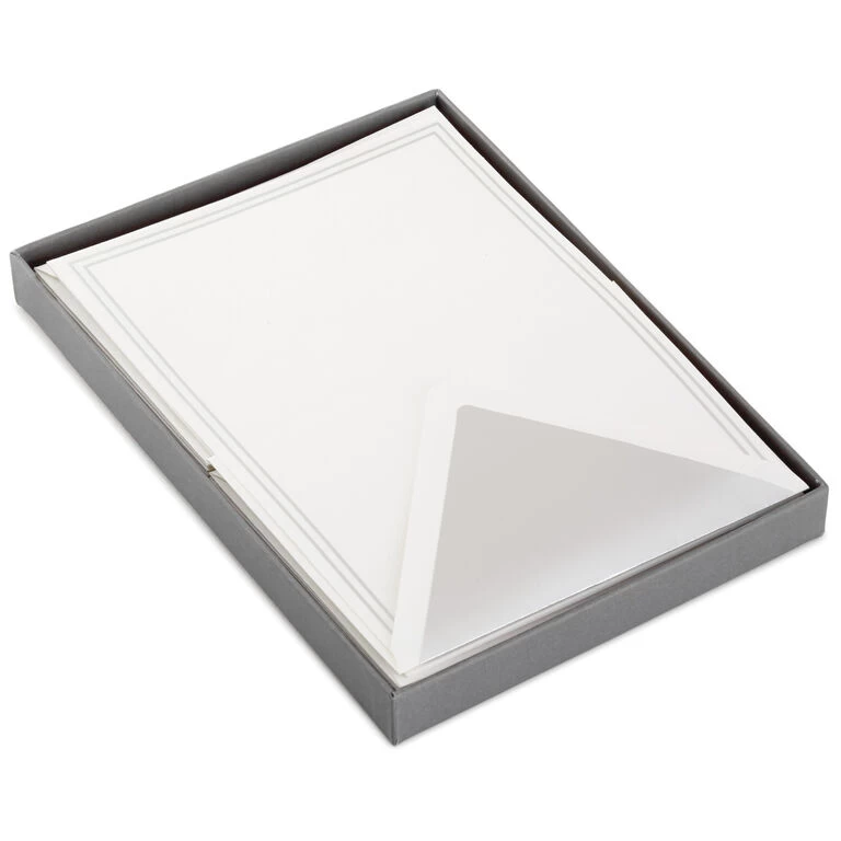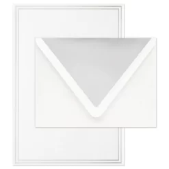- Boxed stationery set includes 20 sheets/foil-lined envelopes.