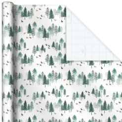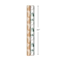 - Pack includes 2 wrapping paper rolls in assorted winter pine designs: white pine illustrations on kraft and snowy forest scene on white.