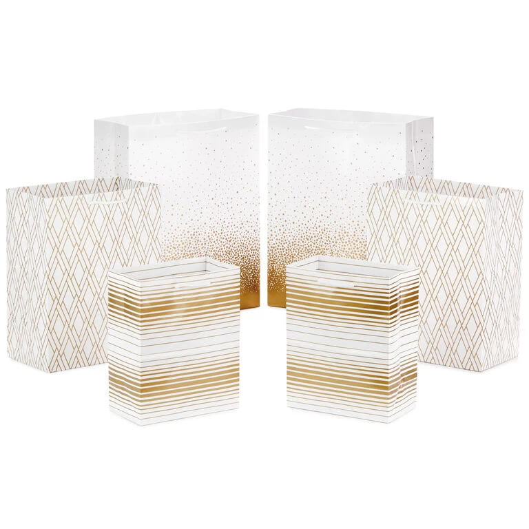Hallmark Elegant Gold Assorted Sizes 6-Pack Gift Bags