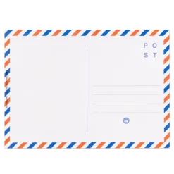 - Booklet of 10 blank postcards includes 2 each of 5 designs: blue lettering, smiley faces, retro lettering, rainbow, pink lettering on yellow. Postcards feature matte paper.