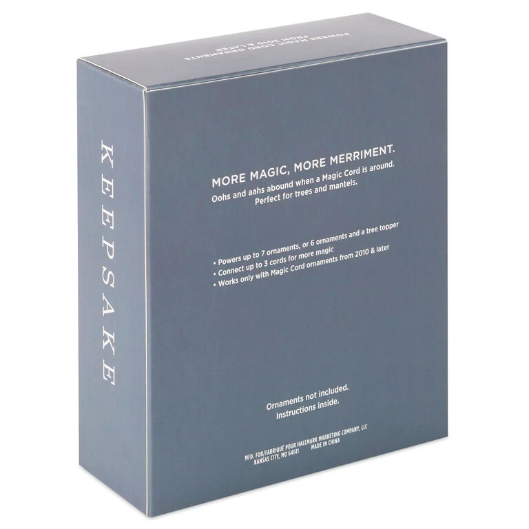 - Key Features: Keepsake Magic Cord powers up to 7 compatible Hallmark Keepsake Ornaments, or 6 ornaments and a tree topper. Connect up to 3 cords for more magic. Works only with Keepsake Magic Cord ornaments from 2010-2020. Ornaments sold separately.