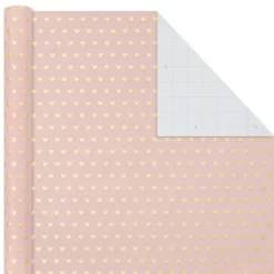 - Designs include: gold foil hearts on pink, floral on gray, gray and white stripe.