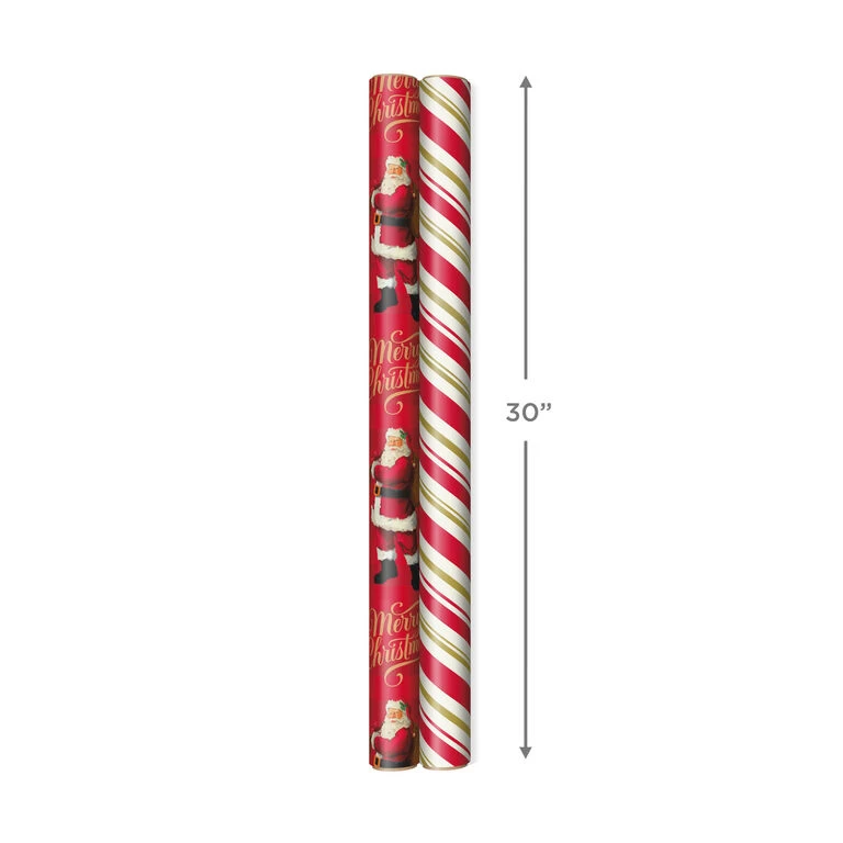 Hallmark Santa And Stripes 2-Pack Christmas Wrapping Paper Assortment, 160 Sq. Ft.