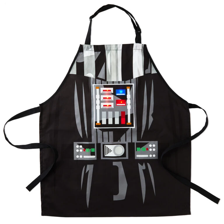 Rule the galaxy—or the kitchen—when you slip on this Star Wars apron. The bib-style cooking accessory features a Darth Vader design with lights that blink in the chest plate area when you switch it on. Makes a great gift for your favorite grill master or any Star Wars fan.