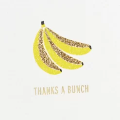 Blank thank-you notes feature a cute design of a bunch of bananas with glitter accents and gold foil detailing a punny message. Bulk pack of cards is perfect for saying thanks after bridal and baby showers, weddings, birthdays and everyday kindnesses.