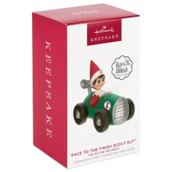 One of Santa’s Scout Elves is ready to report back to the big guy…after he finishes the big race! Fans of the popular The Elf on the Shelf tradition will love to display this festive fellow sitting behind the wheel of his derby car. Celebrate a beloved family tradition—even if all the believers have grown up—with this fun Christmas tree ornament.