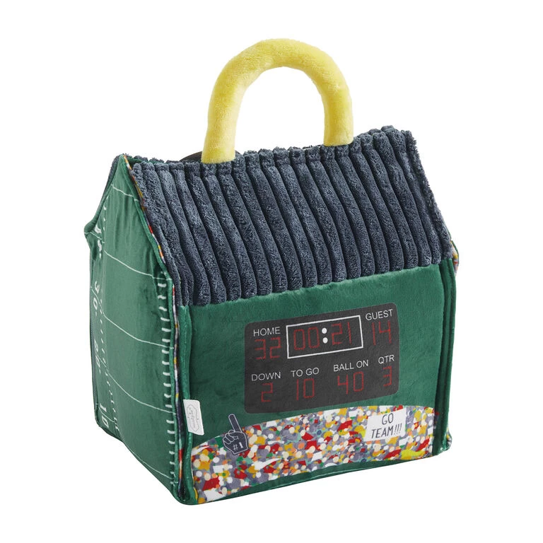 Get ready for some football on the go with this plush toy set. The fold-out, instant stadium includes a referee, two football players and a football with kid-friendly crinkle noises. All the pieces fit inside the foldable stadium that features a handle on top for carrying everywhere. Makes a great birthday or holiday toy for kids.