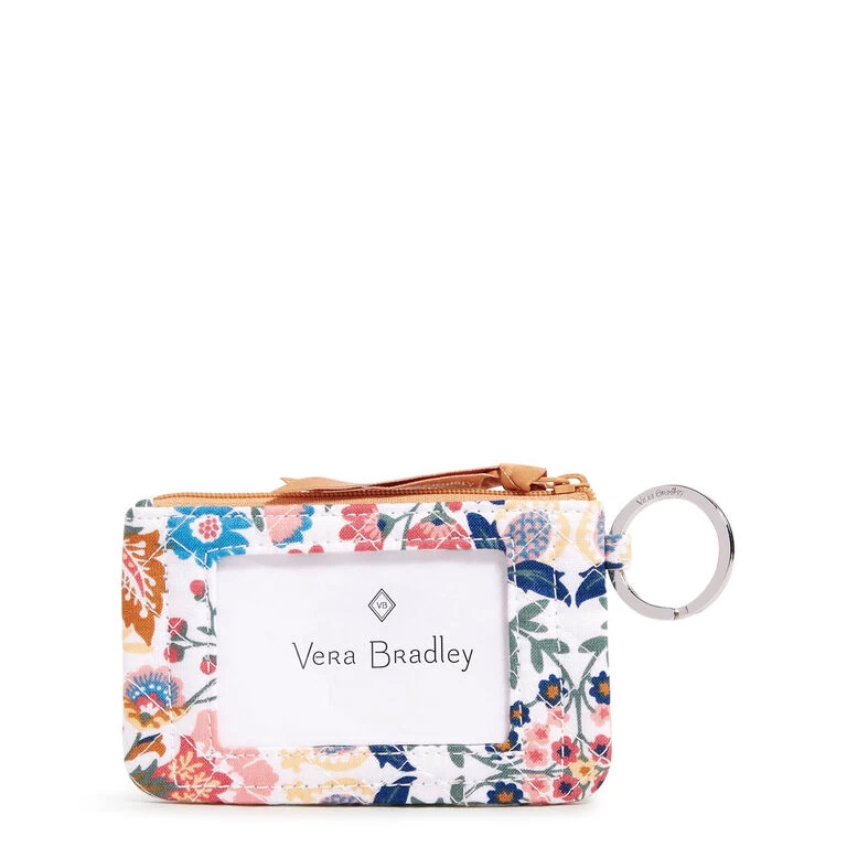 This might be the perfect case for quick errands and travel! Just tuck your cards and cash in the lined interior compartment and zip it closed. Recycled cotton fabric in a versatile multicolor floral pattern is lightweight, making this compact wallet from Vera Bradley a must-have! Convenient front window holds your ID securely. And it includes a large key ring for easy access to your keys.